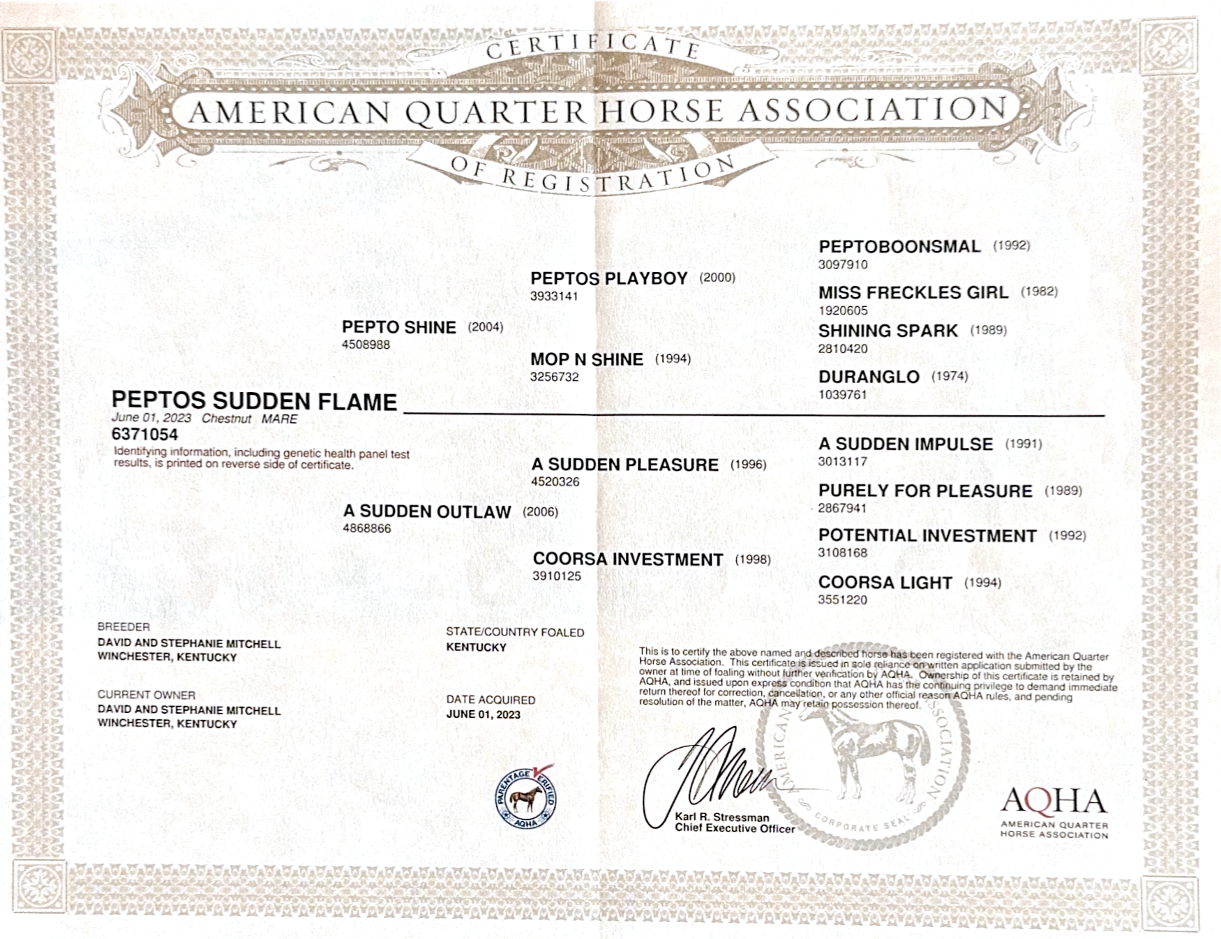 AQHA Registered Name: Peptos Sudden Flame